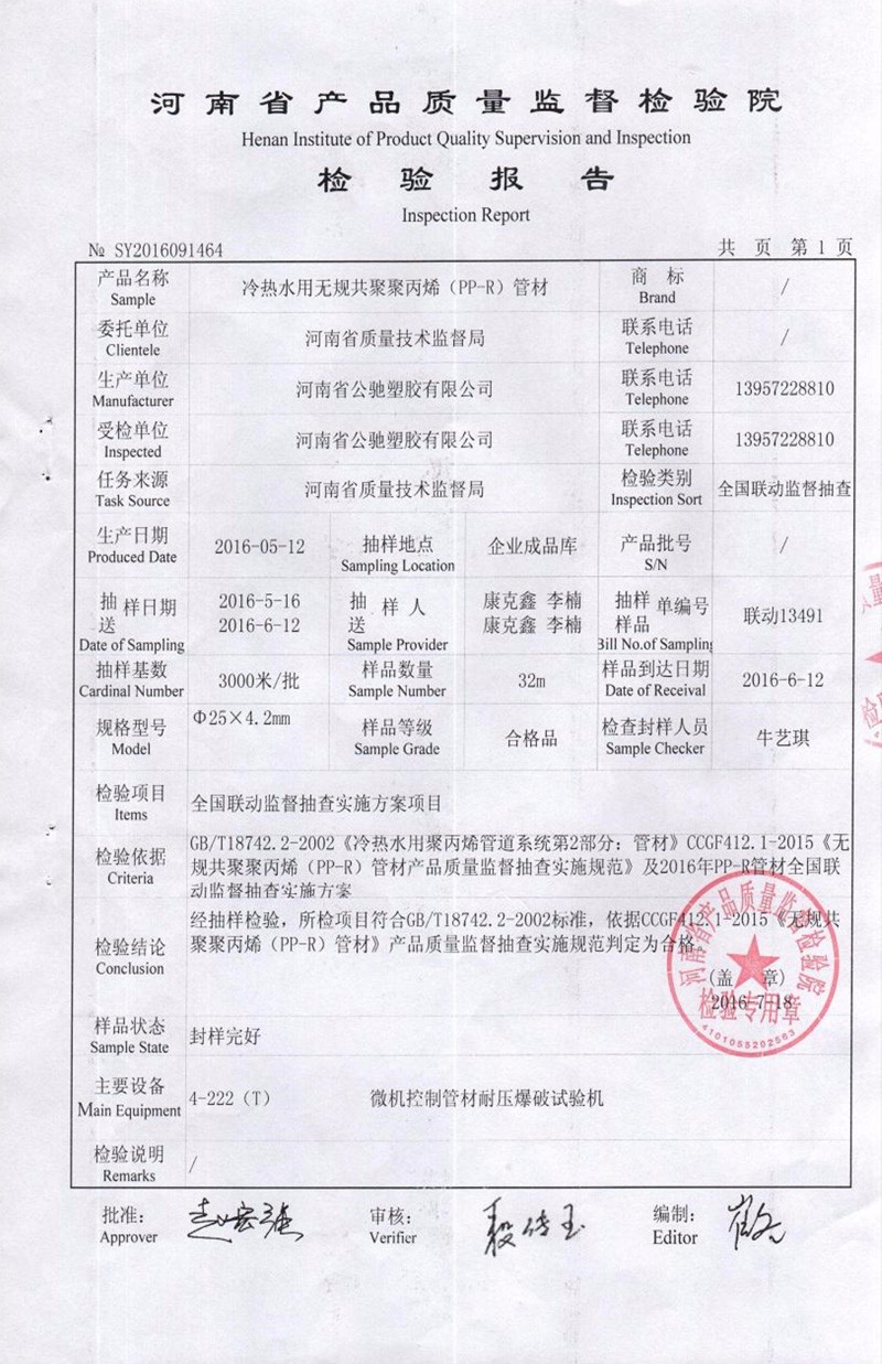上一篇:PE給水管材質(zhì)量合格檢驗(yàn)報(bào)告